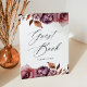 Cartel de un libro de boda floral rústico con flores de cascada y follaje en tonos marsala, borgoña, violeta, marrón y naranja oxidada. El elegante diseño floral de otoño se complementa con un guión moderno de caligrafía. Personalice el signo del libro de bodas con el texto de su personalizado. El letrero del libro de bodas florales de otoño es perfecto para su boda o evento especial. Diseñado para coordinar con nuestra colección Rustic Autumn Floral boda.