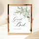 This sage green botanical guest book sign features soft watercolor greenery and elegant modern-classic typography, designed for refined wedding reception spaces.