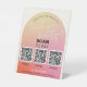 El Rótulo Pedestal de código QR para empresas purpurinas rosadas tiene un fondo de purpurina rosa/naranja con espacio para 3 métodos de pago de código QR. Perfecto para usar como signo de pago sin contacto para su salón o pequeña empresa. El purpurina púrpura y el moderno guión le dan un toque de lujo a este símbolo peatonal de negocios de moda.