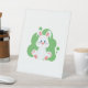 Un conejito blanco y descarado de personalizado sentado con un fondo salpicado.