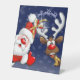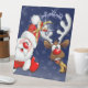 "¡Ho Ho Ho Ho Ho Ho Ho! ¡Los navidades están aquí! ¡Feliz Navidad a todos!" Feliz y lindo Papá Noel con el pulgar arriba, celebrando a los Navidades con su Buda, el gracioso reno - personajes de caricatura. Diseño exclusivo © BluedarkArt.