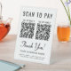 Make checkout fast, simple, and professional with this modern Scan to Pay 2 QR Codes Tabletop sign. Designed for counters, checkout areas, and vendor tables, this sign allows customers to pay instantly using their preferred payment app with a quick scan -- no cash, cards, or extra steps required. The clean, easy-to-read layout highlights your payment options front and center, with space for 2 QR codes so customers can choose how they pay. A friendly “Thank You” message adds a polished, customer-focused touch, while the customizable business name and contact details reinforce your brand at the point of sale. Ideal for small businesses, retail stores, salons, cafés, pop-ups, food trucks, and service providers, this sturdy tabletop sign stands upright for excellent visibility without taking up valuable counter space. It’s a simple, stylish solution for offering fast, contactless payments while keeping your checkout area organized and professional.