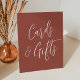 Este elegante cartel de velador de bodas incluye la frase "Tarjetas y Regalos" en escritura blanca sobre un vibrante fondo de óxido, agregando un toque de calidez y sofisticación a su celebración. Puede personalizar el signo con texto personalizado, como los nombres, la fecha boda o un mensaje de agradecimiento, para que sea único suyo. Ideal para bodas, este versátil letrero también se puede usar para otros eventos como duchas de novias, duchas para bebés, fiestas de cumpleaños y más. Con su encantador diseño, no sólo ayuda a los clientes directos, sino que también mejora la estética general de su ocasión especial.