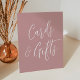 Sencillo y elegante rótulo de un velador de boda con la frase "Tarjetas y Regalos" mostrada en escritura blanca con un polvoriento fondo rosa. Personalice el signo con texto personalizado opcional como sus nombres, fecha boda, mensaje de agradecimiento, etc. El letrero también se puede usar para otros eventos como duchas de novias, duchas para bebés, fiestas de cumpleaños y más.
