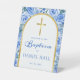 Baptism Boy Signo moderno de bienvenida azul turbio Rosa. Elementos coincidentes disponibles.