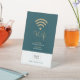 Comparte tu contraseña de wifi con este moderno signo para tus invitados. Este diseño presenta una bonita imagen wifi con un corazón de color dorado y verde. Puede personalizar el texto y agregar su logotipo. Este letrero será una buena adición a sus centros de negocios como cafés, restaurantes, hoteles, oficinas, etc.