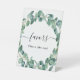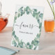 Fondo blanco. Decorado con vegetación eucaliptus acuático. Con el texto: Favores, por favor, ¡tomen uno!