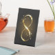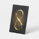 Oro, símbolo de infinito de joyas con estrellas doradas sobre fondo negro. Diseño con estrella dorada.