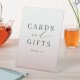 Enhance your contemporary wedding celebration with this sophisticated wedding sign. Featuring clean and minimal wording, 'Cards & Gifts', presented in an elegantly simple format. Perfect for adding a touch of grace, style, and charm to your special day.