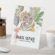 Guide guests to the treats with this playful Snack Safari party design featuring a watercolor tiger wearing party sunglasses, festive balloons, tropical leaves, and cheerful confetti details. Created in a soft hand-painted style, this design adds a fun jungle theme to snack tables, dessert stations, and birthday party food displays.