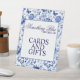 This blue and white floral-themed tabletop sign features elegant blue flowers and butterflies, setting the perfect tone for a memorable Something Blue Before I Do bridal shower.
