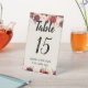 Elegant wedding table card featuring the couple’s names, table number, and wedding date — designed with a refined and romantic style.