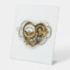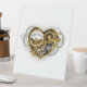 Mechanical, volumetric, steampunk heart with pressure gauge, steel and gold gears on white background. Steampunk style.