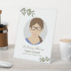 Un simple, sobrio y minimalista Rótulo funeral Pedestal con un marco fotográfico circular de las ramas de oliva acuarela y fallecida para conmemorar, conmemorar o despertar funerario.
