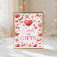 Adorable sweetheart-themed Cards and Gifts sign featuring red hearts, bows, and elegant script lettering. Perfect for guiding guests to the gift table at a baby shower or first birthday. This printable décor piece adds a cute and cohesive touch to your event theme and pairs beautifully with heart or pink party decorations.