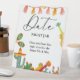 Calligraphy taco 'sobre el amor real guitarra boho ducha de matrimonio, ducha de novia, frasco de dátiles de pareja en un estilo bohemio con un bello arreglo de cactus floridos, flores y un arreglo de cactus