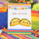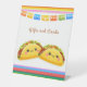 Adorable “Taco ’Bout a Baby” fiesta baby shower design featuring two cute kawaii tacos with colorful serape accents. Perfect for a fun twin fiesta theme baby shower.