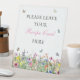 Summery y moderno, este cartel peatonal de "Por favor deja tu receta aquí" usa un diseño que presenta un campo de flores silvestres delicadas de colores vivos con mariposas, abejorros y ladybugs. Puede personalizar de todos los detalles del texto y de la ubicación del gráfico a sus necesidades específicas.