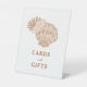 Añade un toque de elegancia a tu mesa de regalo con este cartel de velador de "Tarjetas y Regalos" de conchas marinas. Con suaves tonos costeros y acentos botánicos, es el signo perfecto para las duchas de novias, especialmente temas de playa o destino. Práctico, elegante y fácil de mostrar. #bridalducha #boho #seashelltopic