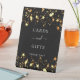 Un clásico fondo negro decorado con estrellas doradas. Con el texto: Tarjetas y regalos, gracias" Para fiestas de cumpleaños, bodas, despedidas de soltera, fiestas de graduación.