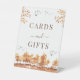 Disfrute de la sofisticación con nuestro rústico cartel botánico de bodas en otoño, dando la bienvenida a los huéspedes con el mensaje "Tarjetas y Regalos". Decorado con un elegante color marrón y terracota de hojas de otoño con motivos y paisajes, este cartel le da un encanto refinado a su decoración boda.