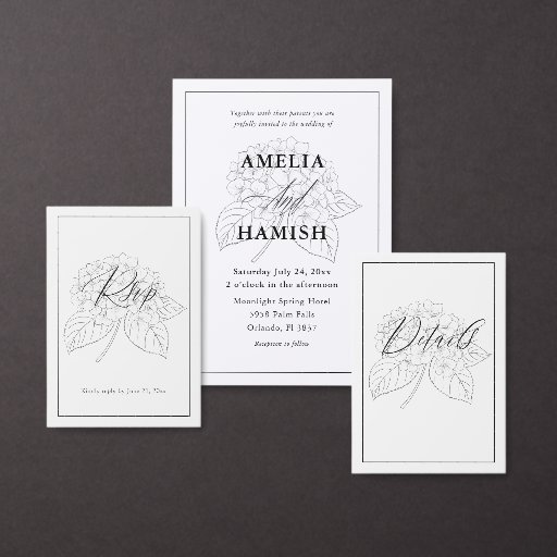 Minimal Hydrangea Wedding Invitation CollectionDiseñado por Lara Bjornson