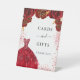 Expositor En L Tarjetas regalos rojos vestido blanco flores fiest