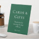Tarjetas verdes de esmeralda y regalos Rótulo Pedesto de ducha de novia