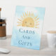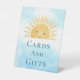Este Rótulo peatonal Baby Shower Cards and Gifts cuenta con un sol sonriente de color amarillo, una tipografía elegante y un fondo azul del cielo. Acuarela original © Michele Davies.