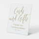 Moda de Tarjetas y Regalos Evento Boda Moderno Rótulo Pedestal Tabletop Rótulo presenta el texto moderno "Tarjetas y Regalos Gracias (sus nombres y fecha)" en un guión moderno de caligrafía dorada sobre fondo blanco. Personalice editando el texto en los cuadros de texto proporcionados. Diseñado por ©Evco Studio www.zazzle.com/store/evcostudio