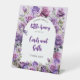 Un dulce Baby Shower morado con rosas morados. Puede personalizar esto con sus propios detalles.