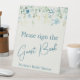 Teal blue on ivory floral bridal shower guest book table sign.