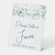 Teal blue green on white floral bridal shower favors sign, table top sign.