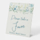 Teal blue green on ivory floral bridal shower favors sign, table top sign.