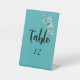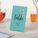 These teal wedding table signs feature a bold teal background with a romantic watercolor floral cluster at the top, beautifully framing the modern “Table” script and table number below. They coordinate perfectly with your teal floral invitation suite and add an eye‑catching, cohesive touch to your reception décor while helping guests easily find their seats.