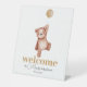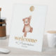Un cartel de bienvenida con una ducha de bebé neutra de género que incluye un oso de peluche y un globo beige. Elementos coincidentes disponibles en la colección Temática de Baby Shower de Teddy Bear.