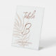 Elegantes números de tabla boda boho con ilustracion de hojas de palma de terracota y letra de escritura moderna. Perfecto para bodas neutras, desérticas o de destino con una estética minimalista. Personalice sus nombres y fechas para que coincidan con su tema boda.