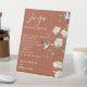 Este moderno cartel de boda de libros de terracota chinoiserie floral jenga se puede personalizar con su información en una tipografía elegante. Diseñado por Thisisnotme©