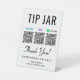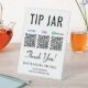 Modern tip jar tabletop pedestal sign for your business with Venmo, Zelle and CashApp QR codes for customers to scan to tip you or your employees. Add your name, phone number and street address or other information in simple lettering.