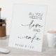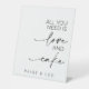 El diseño de este estilo minimalista "todo lo que necesitas es amor y pasteles" es una manera divertida de decorar una mesa de pasteles o postres en tu boda, fiesta de compromiso o celebración del aniversario. Los siguientes nombres pueden ser editados.