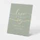 Eleva tu decoración boda con este elegante y moderno cartel de caligrafía minimalista en verde sabio, que incluye la dulce frase "Amor es dulce, Por favor, tómate un trato". Con un romántico corazón de cuerda dorada, le da un toque de sofisticación a su mesa, invitando a sus huéspedes a disfrutar de sus deliciosos dulces. Perfecto para una celebración encantadora y elegante.