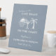 Añada un toque de elegancia en la playa a su celebración con este Rótulo Pedestal Blue & White "Last Toast on Coast". Con la frase: "Última tostada en la costa" en negrita, azul, acompañada de un ilustracion lúdico de sol, copas de cóctel y palmeras, este cartel se sitúa orgullosamente en una elegante base peatonal, perfecta para resaltar las principales áreas de tu evento.