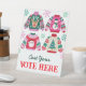 Este desagradable cartel de "Vayan a votar aquí" muestra a 4 navidades suéteres con montones de navidades divertidos como Santa, Reindeer, un Hombre de Nieve y un Árbol de Navidad rodeados de copos de nieve en una paleta de colores de rojo, verde y rosa. Puede personalizar del texto. Vea toda la colección coincidente. Todas las obras de arte están ilustradas a mano por Kaitlyn Thomas y están protegidas por los derechos de autor.