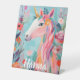 Haz que los cumpleaños sean mágicos con nuestro Letrero de Pedestal Unicornio de Sueño Pastel Arcoíris. Personalízalo con un nombre para un toque moderno y lindo, perfecto para cumpleaños temáticos. Esta creación alegre y colorida añade un toque de magia, lo que la convierte en una tarjeta ideal para niños que aman a los unicornios.