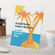 Rótulo Pedestal de vacaciones de verano de la Reunión Familiar, con nombre de familia del personalizable y palmeras. El diseño muestra el sol, las palmeras, el horizonte azul y la playa purpurina dorada, con tipografía atrevida. Simplemente personalizar el nombre en la parte delantera y los detalles del evento. Disfruta de tu evento de verano con esta señal peatonal. Obtén regalos a juego para toda la familia para hacer de tu próxima reunión familiar un momento para recordar.