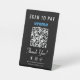 Make checkout quick, easy, and contactless with this Venmo Scan to Pay QR Code black tabletop pedestal sign. Designed for countertops, vendor tables, and service desks, this modern sign lets customers send payment instantly with a simple QR code scan -- no cash, cards, or apps to search. The clean, minimalist layout keeps the focus on fast payments while offering space for a friendly “Thank You” message, Instagram, Facebook, and TikTok icons, and your social media handle and website or other text in simple white lettering. Ideal for small businesses, pop-ups, food trucks, salons, artists, and service professionals, this sturdy pedestal sign stands upright for high visibility without taking up valuable counter space.