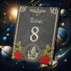 Viking místico encanto con elegantes nudos celtas. Un marco delicado de color dorado con nudos celtas ornamentales rodea el diseño, destacando su encanto místico tradicional. En el centro hay un elemento circular con un barco de color dorado que navega sobre olas suaves, símbolo de viajes compartidos y nuevos comienzos. El círculo está rodeado de nudos celtas suplementarios, en los que se resalta el vínculo y la herencia de la pareja.