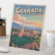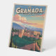 Retroceder en el tiempo con este afiche de viajes de estilo vintage de Granada, España. Presenta la emblemática Alhambra y las montañas de Sierra Nevada en cálidos colores andaluces. Perfecto para viajeros, amantes de España y aficionados al arte de viajes retro.