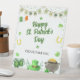 Get together for a fun St. Patrick's Day celebration. Irish icons of tiny shamrocks, a pot of gold, a horseshoe, an Irish flag, and green beer in a watercolor effect feature on this pedestal sign to make the holiday special. Great as a welcome or informational sign at any St. Patrick's Day, a cocktail party, or a birthday. Available with matching products. 🍀