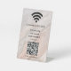 Eleva tu espacio con este minimalista y moderno cartel de mesa, ofreciendo a los huéspedes una forma gratuita de conectarse a tu WiFi. Carga tu código y logotipo QR personalizado y muestra tu nombre de red y contraseña de forma transparente con letras blancas nítidas. Un toque elegante y funcional para cualquier entorno, perfecto para negocios, cafés o eventos.